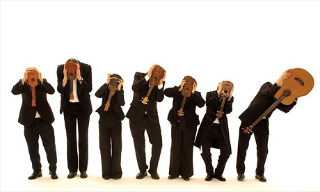 Their faces may be hidden, but, the Ukulele Orchestra of Great Britain is a group of talented musicians who love their ukulele. Heck, they may be shielding their faces out of shame of what has become to their beloved instrument. Check out this awesome video I found on Fark: