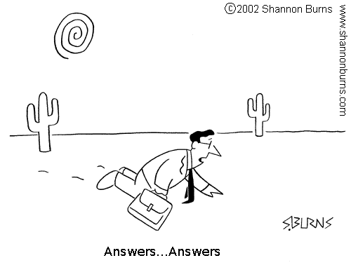 Give this man some answers! Just to be clear, I did manipulate this cartoon, but all the credit obviously goes to the creator who is listed on the side of the cartoon. Still, this suited dude really does want answers, and how can I possibly say no to the desert businessman? Well, I can’t. How about some answers?
