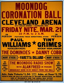 The first big rock n’ roll concert happened 60 years ago today…and it lasted less than one song. While it may not seem like much of a concert, Alan Freed’s ode to togetherness and the new “teen music” he played for his loyal Moondoggers culminated in this one event that ultimately was shut down by police. The concert at the Cleveland Arena was truly about music. While the United States was still very much segregated, Freed encouraged a racially diverse list of performers and audience. Tickets were sold and sold and sold and then possibly counterfeited and sold again, until around 20,000 people longed to push into the arena of around 10,000 seats to dance and enjoy music. The police feared a riot and shut down the show but it was the simple intention and initial gathering that pushed the Moondog Coronation Ball into legendary status and Freed into rock lore.