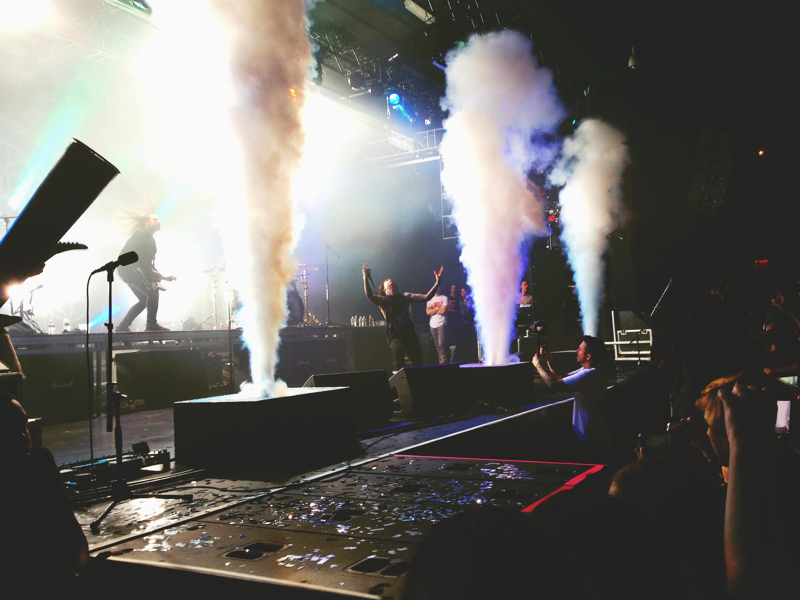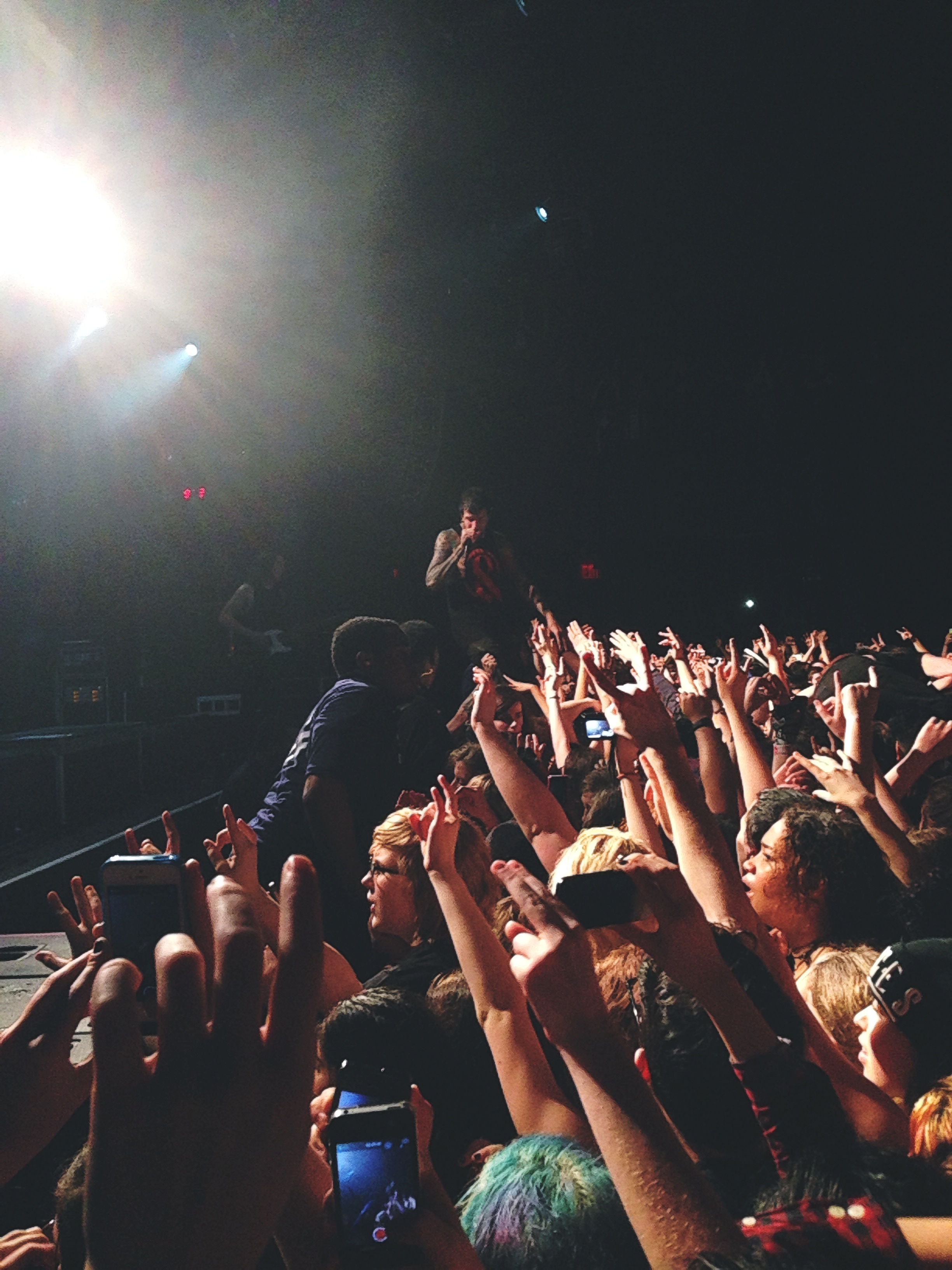 On 2/28, I was, once again, without camera, but have to say I’m pretty satisfied with what my phone did manage to capture. I went to Best Buy Theater for The American Dream Tour, enduring an hour in the literally freezing cold before managing to get inside. The venue was packed for the night’s sold out show. After a long period of confusion, during which the crowd managed to spot BryanStars in the balcony, Northlane was finally on as the opener. The Sydney based metalcore band had a strong set, closing with “Quantum Flux,” a definite crowd pleaser. Next was ISSUES, featuring a bright neon stage set up on their equipment. They played songs from their new album, including “The Settlement” and “Stingray Affliction.” Tyler Carter’s vocals have only gotten better since his days in Woe, Is Me, as have Michael Bohn’s. They had a live turntable set up for the scratches and electronic components of their songs, manned by Ty Acord. They had an energetic set, which, for myself and most of the crowd, felt much too short.