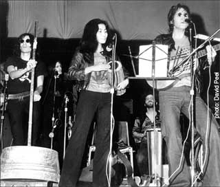 David Peel (left) performing with Yoko Ono and John Lennon. Don't Lennon and Peel sort of look alike? More on this later